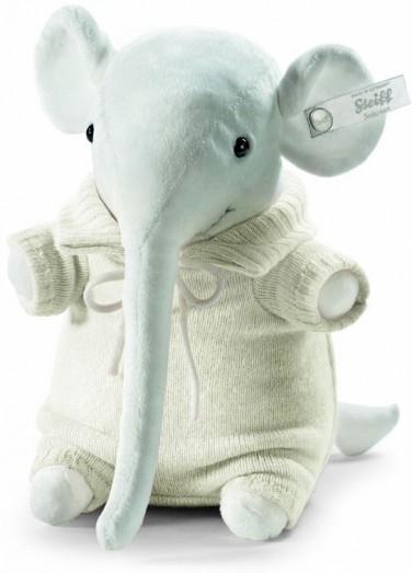 Steiff's Baby Premium Selection Elephant is a very special gift for your new little or the latest arrival of a friend or relative. Made from safe, cuddly plush and gently stuffed with synthetic filling, the little elephant wears an all-in-one suit made from the finest, luxurious cashmere in a pale sand colour - perfect for baby's sensitive skin.
