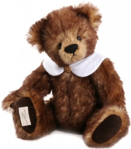 Tertius is fully jointed, with paw and feet pads made from dark brown suedette. He wears a very smart Peter Pan collar secured with a golden button, and features the exclusive Dean's label on his paw.