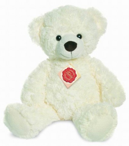 A beautifully soft and cuddly bear from the experts, Hermann Teddy. Made from pale cream plush fur and gently stuffed. A friendly face and sparkling black eyes make this bear a lovely friend.