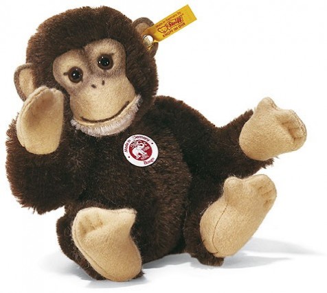 Bongo Chimpanzee is made from the finest mohair in dark brown. His beige felt hands, feet and face have beautifully detailed airbrushing.