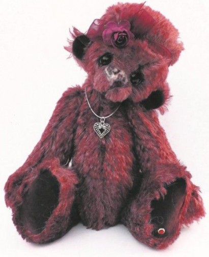 Charlotte is a very special teddy bear, and the namesake of one of our young Kaycee Bears collectors! She is made from a beautiful, mulberry mohair with a little pink fleck and has paw pads and inner ears of burgundy cashmere. As well as a chiffon bow and flower in her hair, she wears a heart pendant.