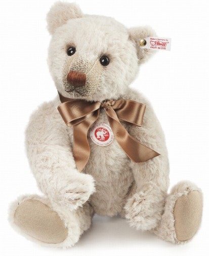 Steiff's British Collectors Bear for 2013 is a stunning and nostalgic chap. He is made from the finest, soft and luxurious, grey-beige alpaca, beautifully woven by Steiff. The style of the bear, with his long snout and arms, takes us back to the very first bears produced by Richard Steiff more than 100 years ago. He has traditional boot button eyes. giving him a lovely twinkle and a growler in his tummy.