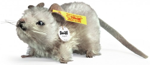 Pieps Mouse from Steiff is made from the finest mohair fur in pale grey. He has felt feet and ears and a long felt tail. His sweet little face features blue pupil eyes, a hand-stitched nose and long whiskers!