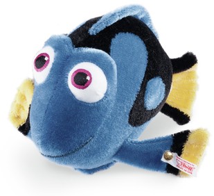 Steiff's Dory is a sweet and vivid fishy character. She is made from the finest mohair in blue, black and yellow. She has big, embroidered eyes and a hand-stitched smile. She carries the Steiff gold-plated button in fin and will be delivered in a Steiff box, complete with numbered certificate of authenticity.