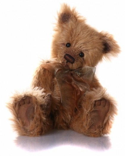 Doughnut has long mohair and his muzzle has been shaved to emphasize his eyes, which say please take me home. His pads have been darkened in places to give an aged look.