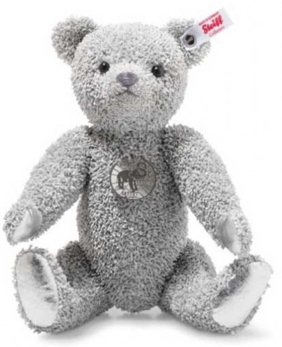 Steiff are now commemorating the 100th anniversary of the first paper bear and have added the Platinum Paper Teddy Bear to the Autumn 2019 Collection. His "fur" is made from platinum-grey paper and pineapple fibres have been used to make his gleaming soles and paws!! He has wooden eyes and a stainless steel "Button In Ear".