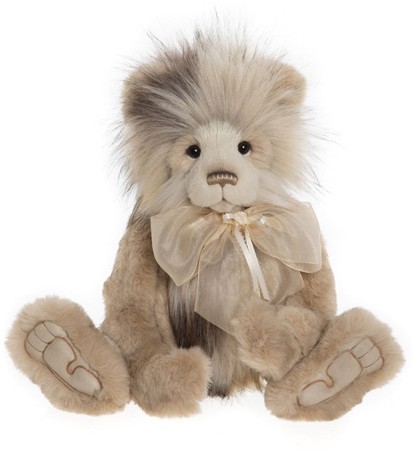 She is made from high quaility, super soft, strokeable fur, which is light and dark cream, with some long, fluffy dark and cream fur on the head and tummy, plus a long cream ruff under her neck. The muzzle has been shaved to show the two-tone hand-stitched nose and mouth and she has dark expressive eyes that have rich cream teardrop panda markings and she has a big sculpted, stitched and airbrushed pads. She wears a big, bold organza bow, that has a small satin bow tied within it and this matches her perfectly.