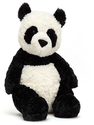 Montgomery Panda is a big dreamy bear in dapper tuxedo colours. You could picture him sat at a very classy restaurant -- but Montgomery's not fussy. He's happy enough chomping on bamboo and doing the odd roly-poly down a hill. A tubby cloud of softness, with a tiny tail and a thoughtful face!