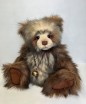 Don't be fooled by his picture - Puzzle is a BIG bundle of fur! He is made from a jigsaw of deep brown, tan and soft grey, long-pile fur. His paw pads are a rich brown with wonderfully contrasting stitched claws of grey. Puzzle is fully jointed and wears both an organza ribbon and a thong necklace with beads and a bell.