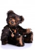 Hubert the panda is made from wonderful mahogany mohair, with a creamy tummy and face. He has big brown faux suede feet and paw pads and wears a giant metal jingle bell on his beaded necklace.